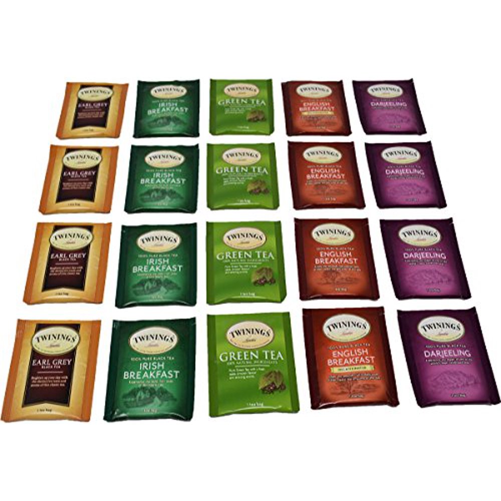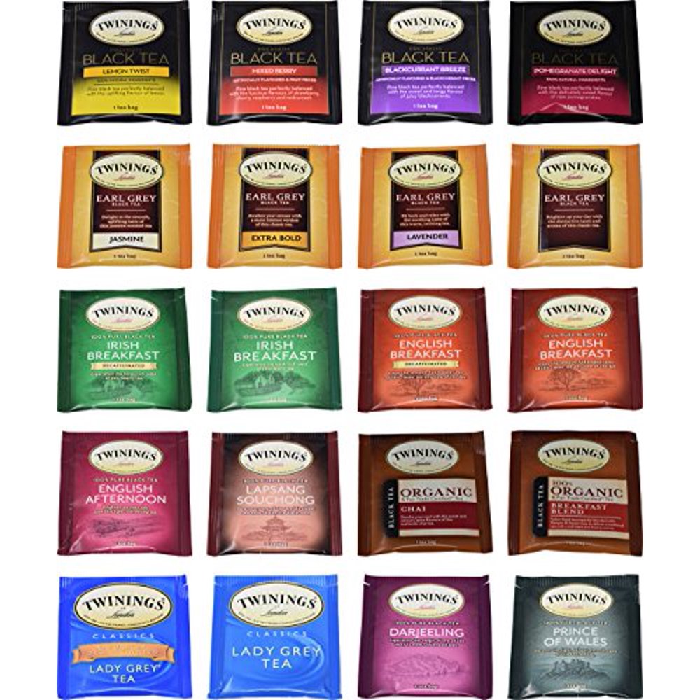 Twinings Tea Bags Sampler Assortment Box - amazon.com This item: Twinings Tea Bags Sampler Assortment Box - 80 COUNT - Perfect Variety Pack in Wood (MDF) Gift Box - Gift for Family, Friends, Coworkers (White) $27.99 ($27.99/Count) Twinings of London Tea Classics Collection, Variety Gift Box Sampler, 48 Tea Bags (Pack of 1) $21.99 ($0.46/Count)