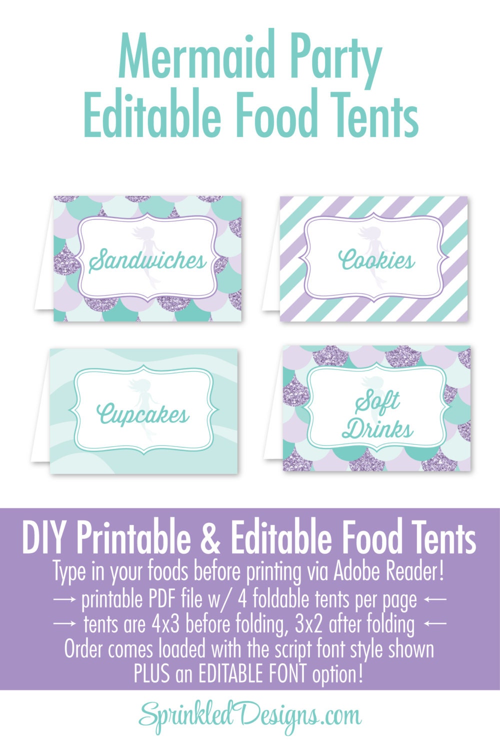 Under The Sea Mermaid Birthday Party Food Labels, Little Mermaid Place ... Under The Sea Mermaid Birthday Party Food Labels, Little Mermaid Place Cards, Instant Download Food Tent Cards, Mermaid Food Tents By Pretty Little Invites $8.58 USD Buy on etsy Product Info PLEASE ENSURE YOU READ THE FOLLOWING IN IT'S ENTIRETY. THIS LISTING IS FOR A DIGITAL, EDIT YOURSELF TEMPLATE. NO Physical product will be shipped.